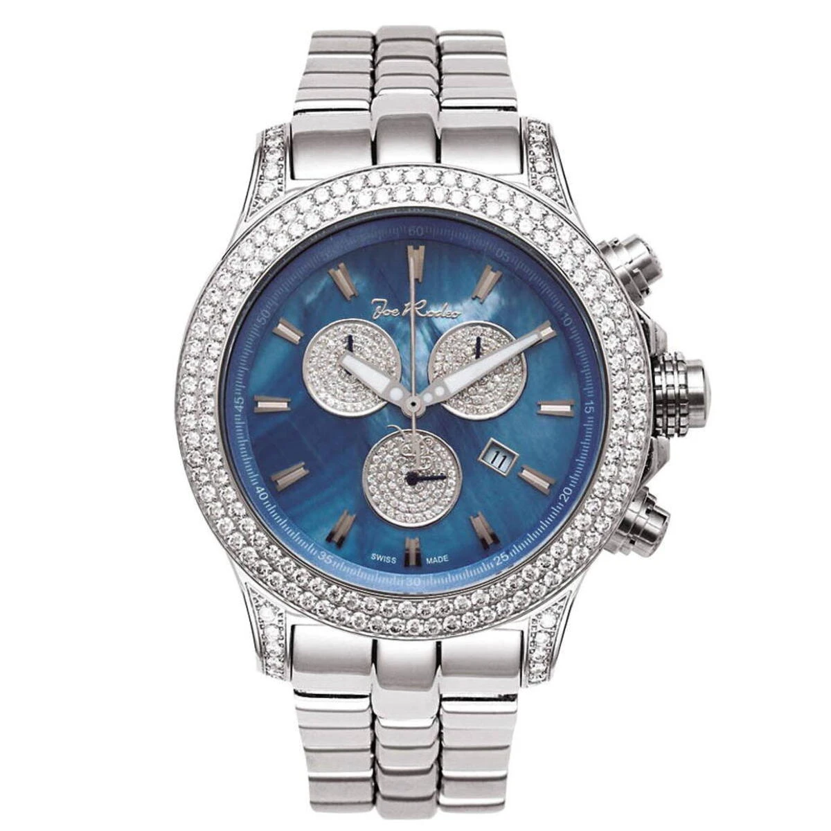 The Joe Rodeo Diamond Men’s Master Pilot 7ct Watch is a stunning timepiece that is sure to turn heads. This watch features a stainless steel case that measures 49mm in diameter and is equipped with a Swiss-Quartz movement. The watch also features a chronograph, date indicator, and second hand-indicator. The watch is water-resistant up to 100 meters and is adorned with 7 carats of diamonds.The men’s diamond watch is the perfect accessory for any man who wants to make a statement. The stainless steel case is sleek and modern, and the diamonds add a touch of luxury and sophistication. The chronograph and date indicator make it easy to keep track of time, and the second hand-indicator ensures that you always know the exact time. The watch is also water-resistant up to 100 meters, making it perfect for any outdoor activity.The men’s diamond watch is the perfect combination of style and function. The stainless steel case is durable and will last for years, and the diamonds add a touch of luxury and sophistication. The chronograph and date indicator make it easy to keep track of time, and the second hand-indicator ensures that you always know the exact time. The watch is also water-resistant up to 100 meters, making it perfect for any outdoor activity.The Joe Rodeo Diamond Men’s Master Pilot 7ct Watch is the perfect accessory for any man who wants to make a statement. The stainless steel case is sleek and modern, and the diamonds add a touch of luxury and sophistication. The chronograph and date indicator make it easy to keep track of time, and the second hand-indicator ensures that you always know the exact time. The watch is also water-resistant up to 100 meters, making it perfect for any outdoor activity. The men’s diamond watch is the perfect combination of style and function.