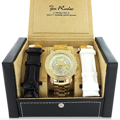 Joe Rodeo Junior Men’s Diamond Watch 3.3ct Yellow Gold Plated