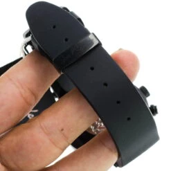Trendy Joe Rodeo Watches: This Master Diamond Watch features 2.20 carats of genuine diamonds masterfully set on the bezel and lugs of the black tone stainless steel case. This Joe Rodeo diamond watch showcases a dial paved in black sparkling stones with three blue mother of pearl chronograph subdials, a date window at the 4 o’clock position and a black rubber band. This men’s diamond watch comes with two interchangeable rubber bands in different colors. The patented strap adjusts once for a perfect fit, and comes on and off with the press of a button.
