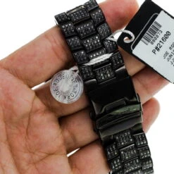 Fabulous Joe Rodeo Men’s Watches! This Joe Rodeo Junior Black Diamond Watch features 27 full carats of genuine black sparkling diamonds, a polished black stainless steel case with diamonds on the sides, lugs and on the bezel, a stainless steel band paved in black diamonds, and a scratch-free crystal glass that roofs a black stainless steel dial paved in white sparkling stones. The 10 ATM water-resistant case houses a fine Swiss-made quartz movement with a chronograph function, center second and date. This Joe Rodeo diamond watch comes with two interchangeable leather straps in different colors. The patented strap adjusts once for a perfect fit, and comes on and off with the press of a button.
