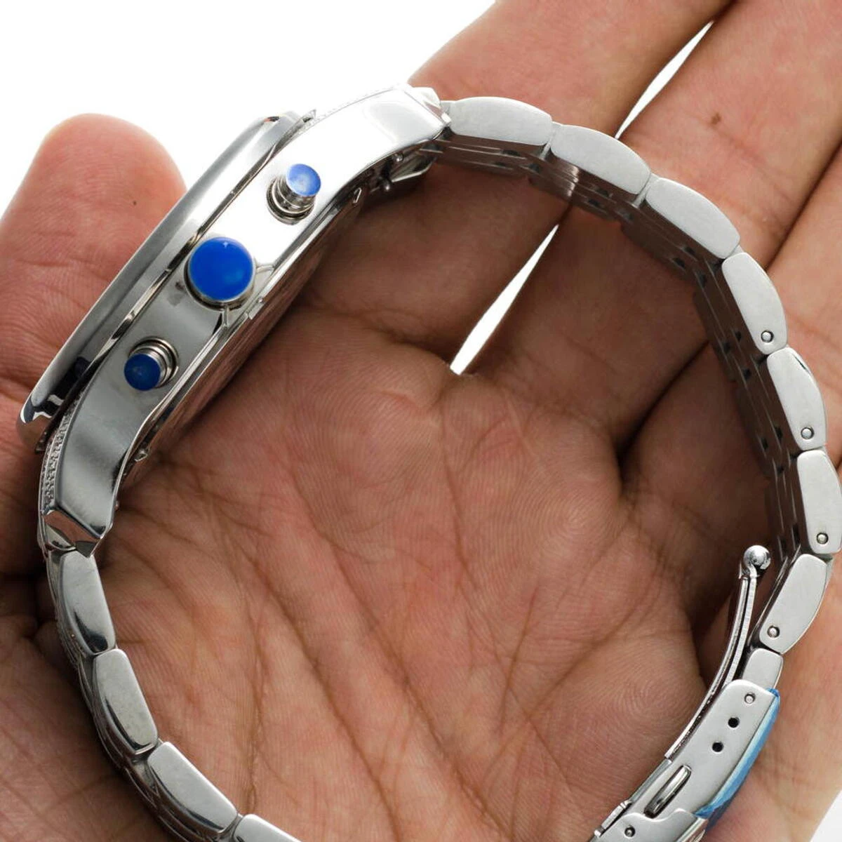 This men’s Joe Rodeo JoJo Watch with Diamond Band is adorned with 3.50 carats of real diamonds that really sparkle! With diamonds on the bezel and lugs, this diamond watch features diamonds going half way around the strap. The Swiss-made chronograph quartz movement sits in the stainless steel case that is water resistant to 100M (330 FT). This luxurious men’s diamond timepiece from Joe Rodeo watches collection comes with extra two interchangeable leather bands.