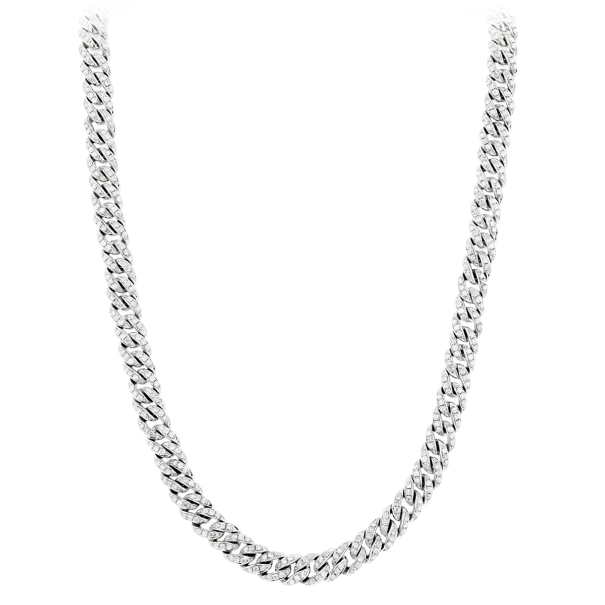 This Fabulous Diamond Cuban Link Chain in Platinum from our iced out Luccello Jewelry collection weighs approximately 95 grams and showcases 10.25 carats of sparkling round diamonds. Featuring a luxurious link design and a fantastic combination of solid platinum and dazzling diamonds, this custom made, iced out diamond necklace is 21 inches long and 6mm wide. This exquisite diamond chain is also available in other sizes (length and width) and with any color diamonds, please contact us for details at 212-3983123.