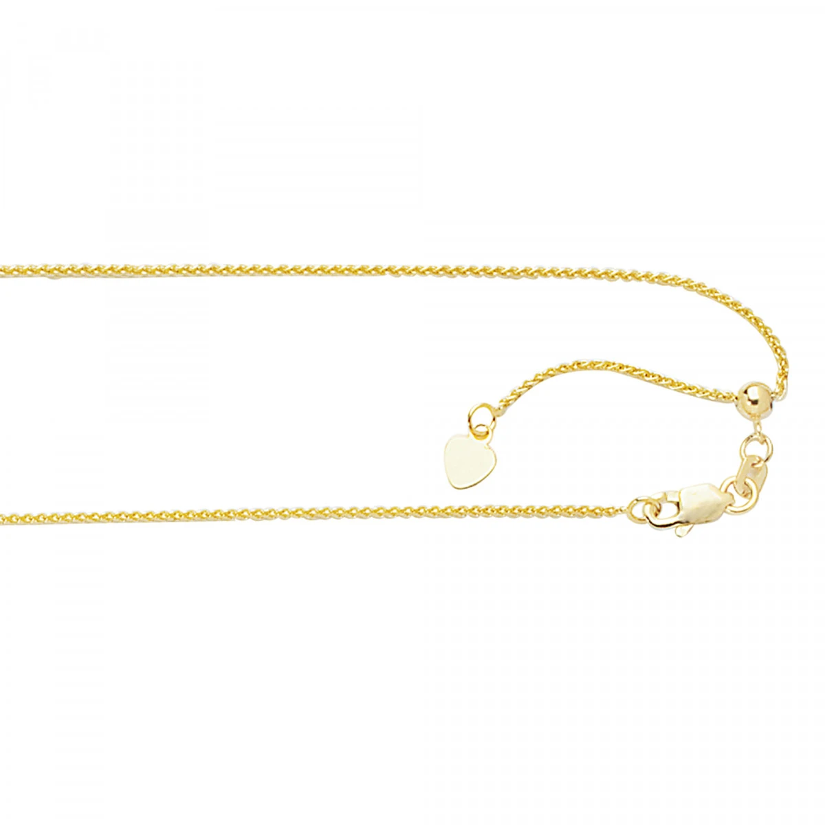 LUXURMAN Solid 10K Yellow Gold Wheat Chain For Women Round Adjustable 1mm