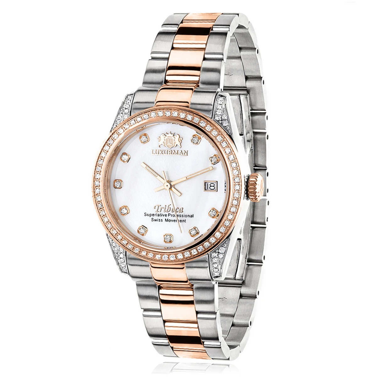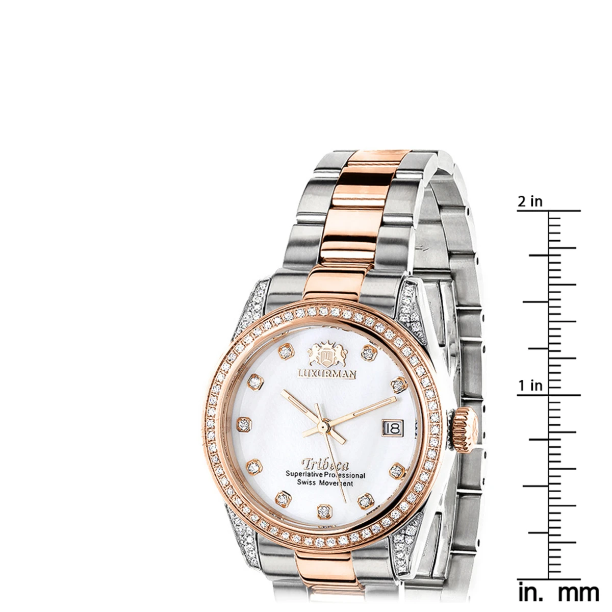 Two Tone Rose Gold Plated Women’s Diamond Watch 1.5ct Luxurman Tribeca