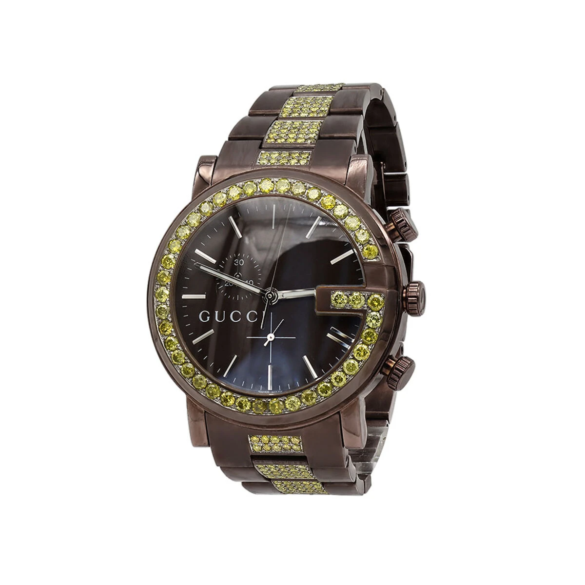 Unique Brown 101M G-Chrono Gucci Yellow Diamond Watch For Men 6 Carats YA101341