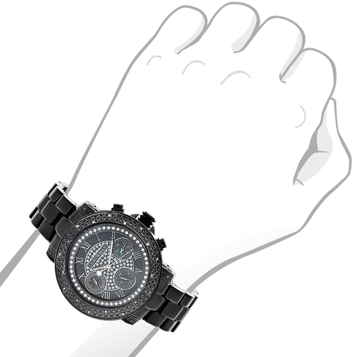 Introducing a unique Luxurman Black Diamond Watch from our Unisex Diamond Watches collection; quality made, this all black plated stainless steel watch features 0.3 carats of diamonds and comes with 2 extra leather bands in different colors.