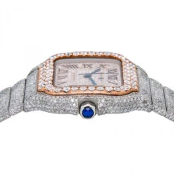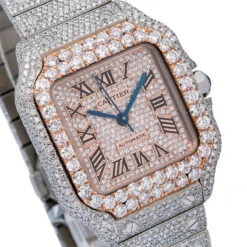 Unisex Diamond Watch Cartier Santos De Cartier 18K Gold Rose Gold Tone Dial